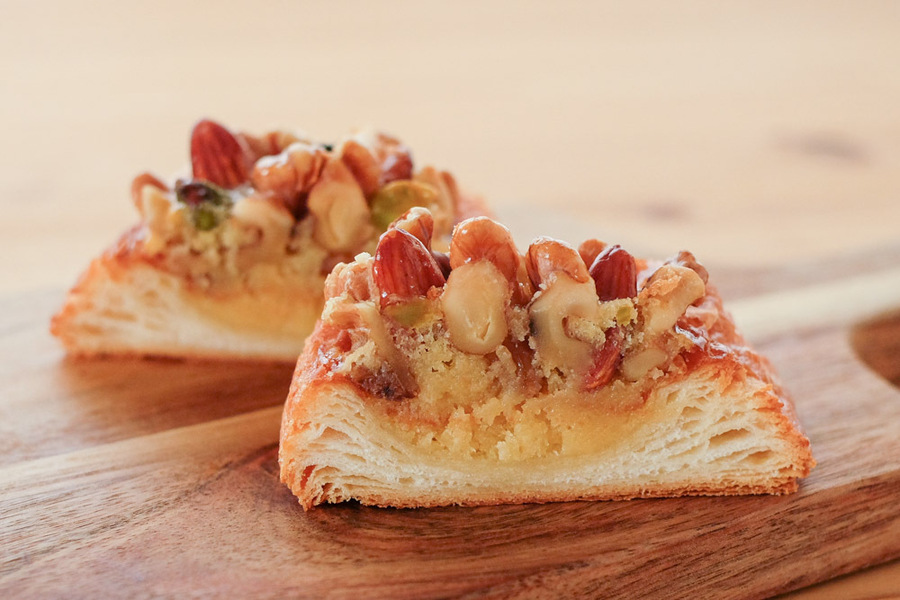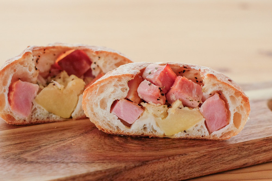 主な原材料:小麦粉、食塩、砂糖、ラード、バター、卵、オリーブオイル、ショートニング、パン酵母、モルト/V.C アレルゲン(8品目):小麦・卵・乳成分・くるみ パン・ド・ミ(角型食パン)(商品一例):小麦粉(国内製造)、ラード、食塩、砂糖、パン酵母、モルト/V.C 焼きりんごのクロワッサン(商品一例);小麦粉(国内製造)、りんご、バター、砂糖、卵、脱脂粉乳、食塩、はちみつ、レモン汁、モルト、パン酵母 博多(商品一例):小麦粉(国内製造)、バター、明太子、マヨネーズ、米、食塩、モルト、パン酵母/V.C、調味料(アミノ酸等)、トレハロース、ベニコウジ色素、増粘剤(加工デンプン、タマリンドシードガム) ※アレルギーがご心配な方はご遠慮下さい。 ※各パンに原材料表示シールを貼付します。 ※一部添加物を含む食材を使っています。 ※一部のパンにははちみつを使用しています。1歳未満の乳児には食べさせないようにしてください。 ※一部ラム酒などのアルコールを使用したパンがあります。
