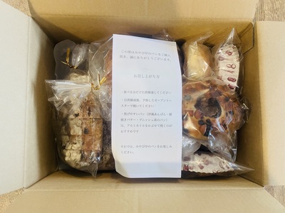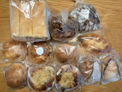 今回は、山栗ショコラ(初)、カンパーニュフリュイ、硬焼きバター、ファクトリーチーズ(初)、ゴルゴンゾーラとクルミのロデブ(初)、バターロール2個(初)、オランジュ(初)、パン·シュー、ロデブトルデュ·ハーフ(初)、大納言(初)、パン・ド・ミ(5枚切り)。パン・ド・ミは5枚切で嬉しかったです。カンパーニュフリュイは前回も入っていて、生地の硬さが食べやすくて、味も含めて好きです。バターロールは他店の塩パンのようで美味しかったし、前回も美味しかったパンシューも入っていて良かったです。主人も、みやび亭さんのパンは気に入ったようです、まだ全部食べていませんが、美味しいのと、待ちもあるし人気店なので、本日制限解除になったので注文しちゃいました。また宜しくお願い致します。