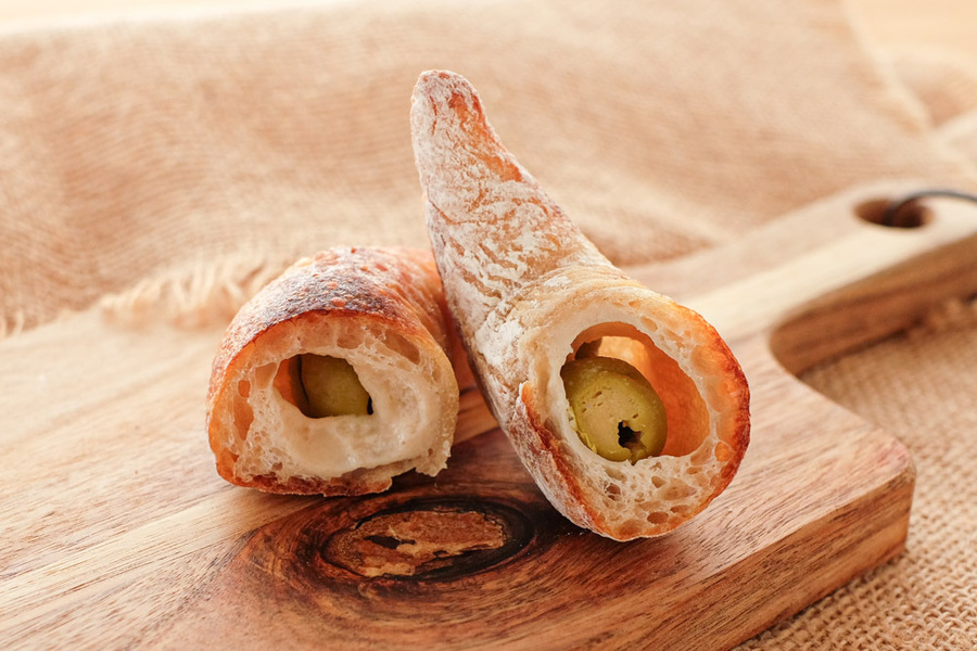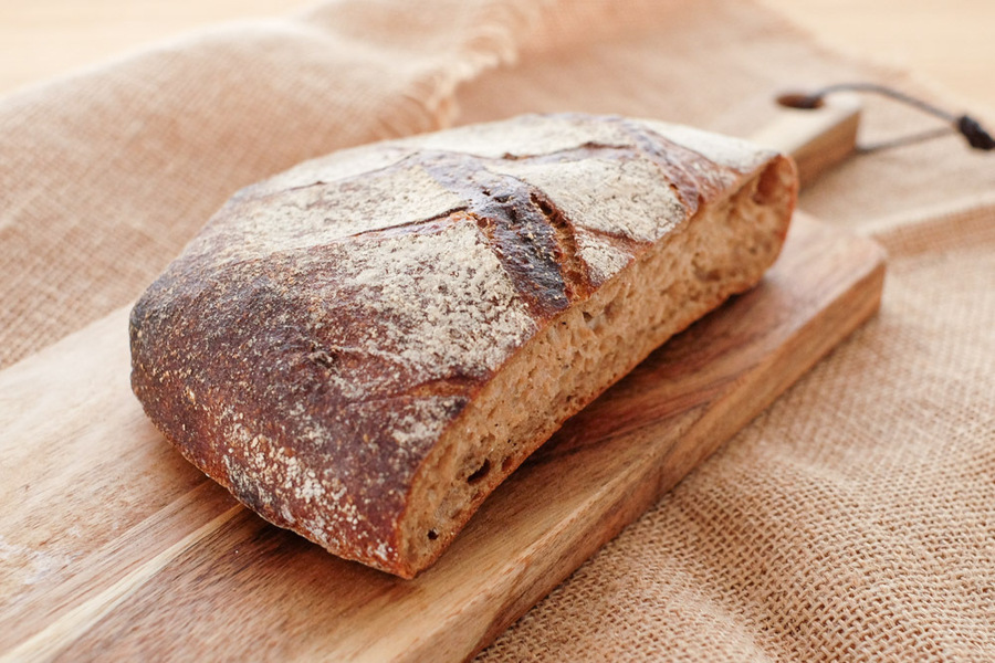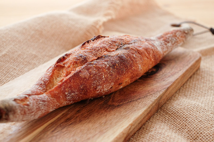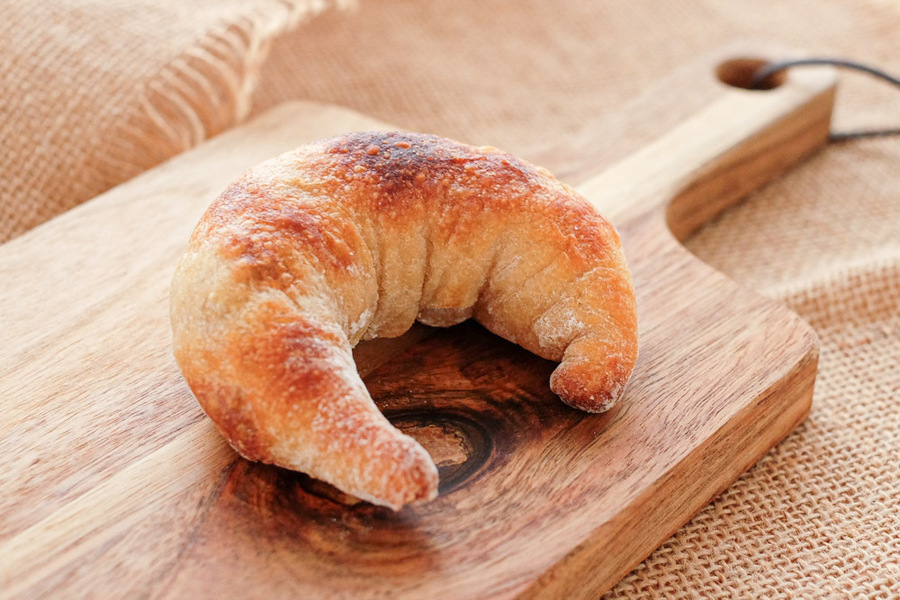 自然解凍後、あらかじめ予熱しておいたオーブンやトースターで温めてお召し上がりください。(※気温が上がってくる夏場は一晩冷蔵庫で解凍してください) パン全体に霧吹きなどで軽く水をかけてからトースターで3分~4分ほど加熱するとさっくり、もっちり出来たてのようになり美味しく召し上がれます。 厚みのあるパンは表面がこげやすいのでアルミホイルをかけて加熱してください。