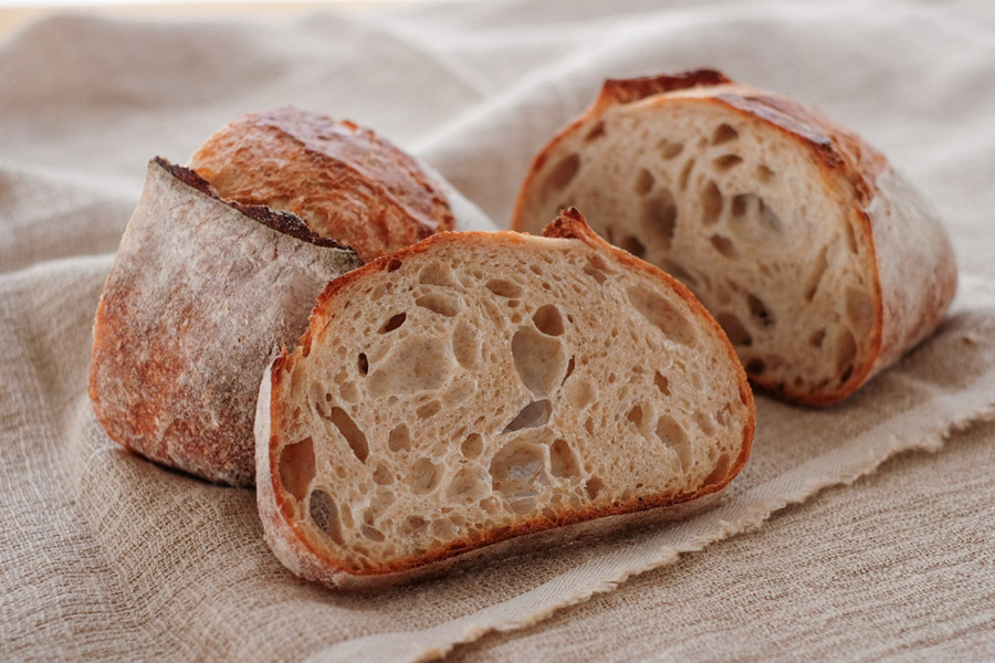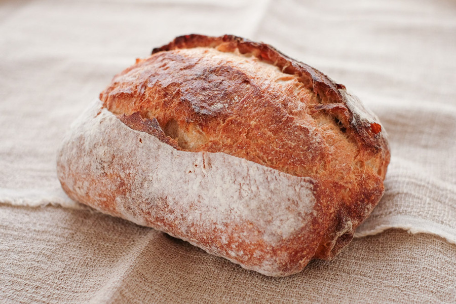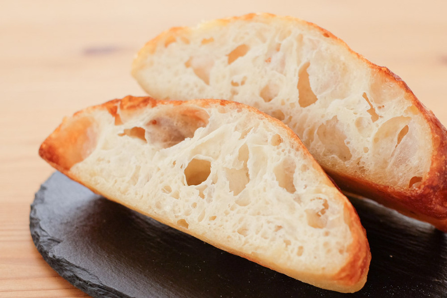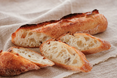 自然解凍後、あらかじめ予熱しておいたオーブンやトースターで温めてお召し上がりください。(※気温が上がってくる夏場は一晩冷蔵庫で解凍してください) パン全体に霧吹きなどで軽く水をかけてからトースターで3分~4分ほど加熱するとさっくり、もっちり出来たてのようになり美味しく召し上がれます。 厚みのあるパンは表面がこげやすいのでアルミホイルをかけて加熱してください。