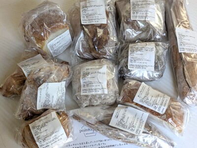 バゲット、カンパーニュ、、ロデヴ、フォカッチャ、リュスティック、食パン、クロワッサンと多種入っていて頂くのが楽しみです