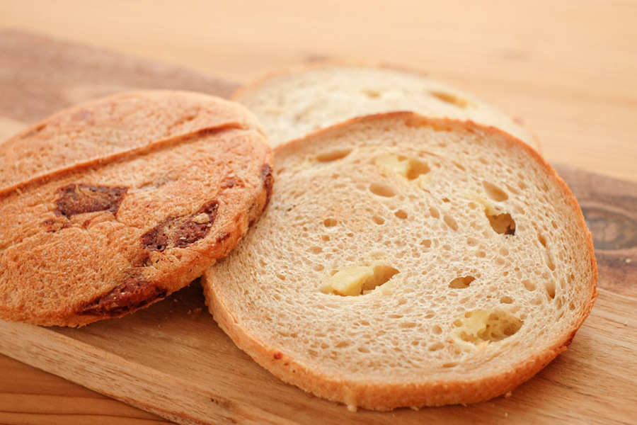 自然解凍後、あらかじめ予熱しておいたオーブンやトースターで温めてお召し上がりください。(※気温が上がってくる夏場は一晩冷蔵庫で解凍してください) パン全体に霧吹きなどで軽く水をかけてからトースターで3分~4分ほど加熱するとさっくり、もっちり出来たてのようになり美味しく召し上がれます。
