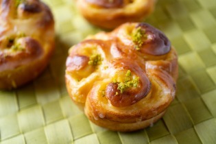自然解凍後、あらかじめ予熱しておいたオーブンやトースターで温めてお召し上がりください。(※気温が上がってくる夏場は一晩冷蔵庫で解凍してください) パン全体に霧吹きなどで軽く水をかけてからトースターで3分~4分ほど加熱するとさっくり、もっちり出来たてのようになり美味しく召し上がれます。