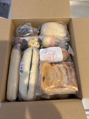 無事に宝箱が届きました。可愛らしいパンを箱いっぱいに入れてくださってました。気になっていた玄米あん食パンが入っていたので嬉しかったです。ありがとうございました。
