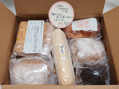 (シールを剥がしてしまって正確ではありませんが)ポテトの入ったまるパン、オニオンのパン、アップルパイをいただきましたが、とても美味しかったです!! パン生地はもっちり、フィリングも丁寧に作られているのが伝わりました。 梱包も綺麗で、また注文させていただきたいと思います。