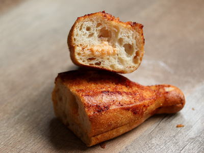 室温で2時間から4時間の自然解凍後、あらかじめ予熱しておいたオーブンやトースターで温めてお召し上がりください。(※気温が上がってくる夏場は一晩冷蔵庫で解凍してください) パン全体に霧吹きなどで軽く水をかけてからトースターで3分~5分ほど加熱するとさっくり、もっちり出来たてのようになり美味しく召し上がれます。