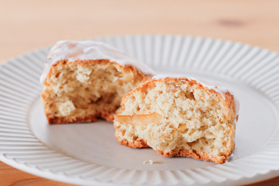自然解凍後、あらかじめ予熱しておいたオーブンやトースターで温めてお召し上がりください。(※気温が上がってくる夏場は一晩冷蔵庫で解凍してください) パン全体に霧吹きなどで軽く水をかけてからトースターで3分~4分ほど加熱するとさっくり、もっちり出来たてのようになり美味しく召し上がれます。 ※冬場はレンジで15秒程度温めてからオーブンで加熱すると中まで温まります。
