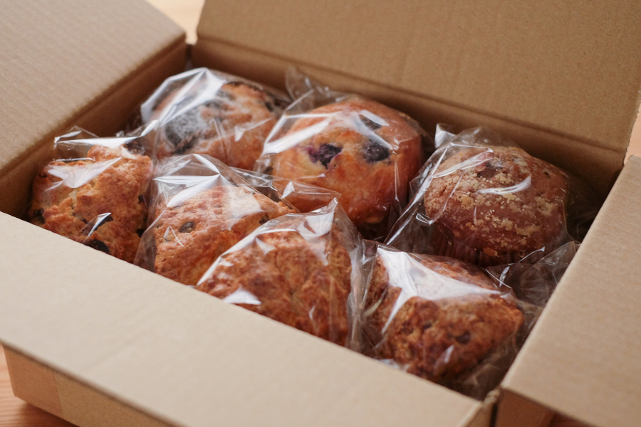 10個ほどのスコーンやマフィンが入ります。 ※内容はお選びいただけません