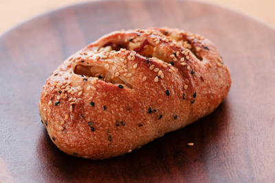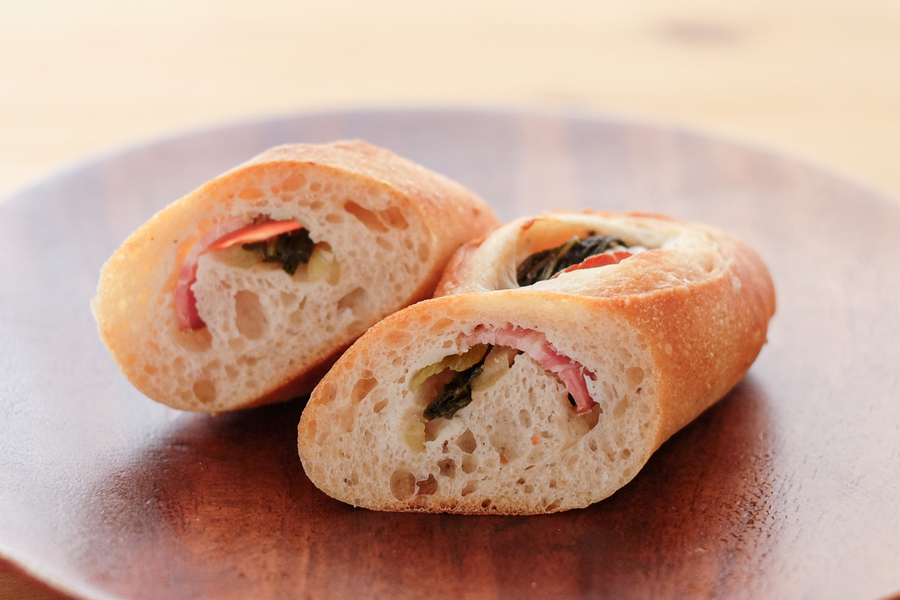 主な原材料:小麦粉、全粒粉、モルト、ごま油、ビートグラニュー糖、本和香糖砂糖、塩、パン酵母、バター、レモン汁 他 アレルゲン(8品目):小麦・卵・乳成分・くるみ クルミとレーズンのカンパーニュ(商品一例):小麦粉、小麦全粒粉、ライ麦全粒粉、ラム酒漬けレーズン、くるみ、塩、焙煎大麦粉、パン酵母、モルト、レモン汁 しゃくし菜ベーコン(商品一例):小麦粉、ベーコン、しゃくし菜漬け、ごま油、小麦全粒粉、塩、パン酵母、モルト、レモン汁/酸化防止剤(アミノ酸等)、酸味料、酒精 ※アレルギーがご心配な方はご遠慮下さい。 ※各パンに原材料表示シールを貼付します。