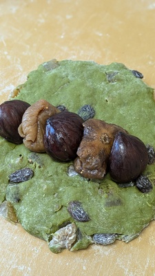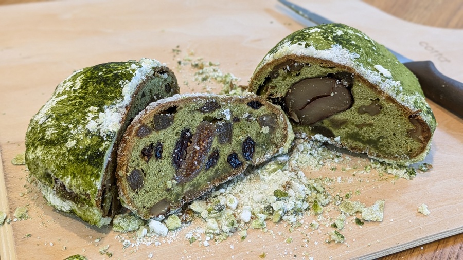 小麦粉(北海道産)、バター、砂糖、牛乳、卵、くるみ、カシューナッツ、パイナップル、有機レーズン、有機イチジク、栗渋皮煮、宇治抹茶、酵母、塩 / トレハロース アレルゲン(7品目):小麦・卵・乳成分・くるみ