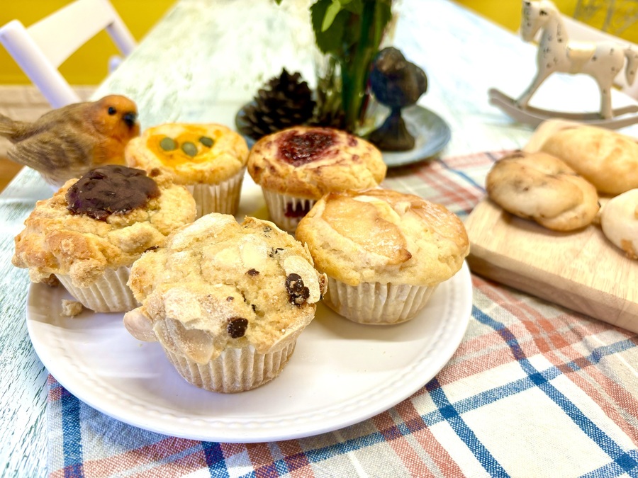 マフィン 主な原材料:米粉、きび砂糖、卵、牛乳、米油、アーモンドパウダー、ベーキングパウダー、天日塩、他 アレルゲン(7品目):乳成分・卵・アーモンド マフィン(商品一例):チョコチップマフィン、ラズベリージャムマフィン、有機あんこのクランブルマフィン、りんごとカスタードクリームマフィン、かぼちゃクリームマフィン ※アレルギーがご心配な方はご遠慮下さい。 ※原材料表示シール、または同梱する原材料一覧表をご覧ください。