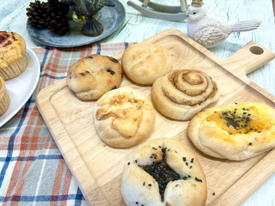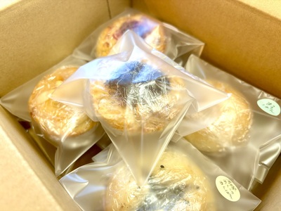 マフィンやパン(スコーンが入る場合もあります。)が、9〜11個ほど入ります。 米粉パンのため、箱いっぱいではございませんのでご了承ください。
