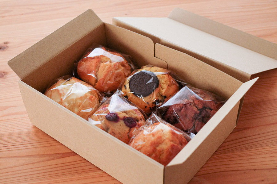 主な原材料:小麦粉、砂糖、バター、卵、牛乳/ベーキングパウダー アレルゲンは、小麦・卵・乳成分を基本使用しています。 マフィンによっては、アーモンド・大豆・バナナ・りんご、ごま、そば、くるみ、マカダミアナッツなども使用しています。 発酵バターマフィン(商品一例):小麦粉(国内製造)、砂糖、発酵バター、卵、牛乳/ベーキングパウダー とってもバナナマフィン(商品一例):小麦粉(国内製造)、砂糖、バナナ、バター、卵、牛乳、スライスアーモンド/ベーキングパウダー チョコチョコマフィン(商品一例):小麦粉(国内製造)、砂糖、チョコレート、バター、卵、牛乳、アーモンドプードル、ココア/ベーキングパウダー、乳化剤 ミルクティレアチーズマフィン(商品一例):小麦粉(国内製造)、砂糖、紅茶、バター、卵、牛乳、レアチーズ、クランベリー/ベーキングパウダー ※アレルギーがご心配な方はご遠慮下さい。 ※アレルギーのご要望がありましたら、メッセージでご連絡ください。(出来るだけ対応させていただきます) ※オレオクッキーやチョコレート、チーズなど、一部添加物を含む食材を使用しています。 ※各マフィンに原材料表示シールを貼付します。
