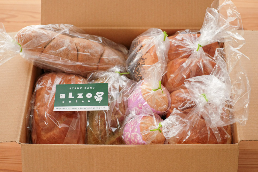 入るパンはお任せになりますが、13~14個ほど米粉パンが入ります。 食パンが中心に入り、5個ほど入ることもあります。(小物パンは少ないイメージ) 種類は約8種類ほど、2~3個ずつ同じ種類のパンが入ることも多々あります。 【主に入る食パン例】 米粉食パン 米粉50% 1斤 (約幅11cm×長さ11cm×高さ10cm) 米粉食パン 米粉85% 1本 (約幅9cm×長さ17cm×高さ6cm) 米粉宇治抹茶食パン 米粉50% 1本 (約幅9cm×長さ17cm×高さ6cm) 米粉ライ麦食パン 米粉80% 1本 (約幅9cm×長さ17cm×高さ6cm) お米おいもパン 1斤 (約幅11cm×長さ11cm×高さ10cm) 【そのほか小物パンの一例】 米粉チーズパン 米粉50%ハーフ×2個(約直径13cm) 米粉ライ麦くるみパン 米粉80% 2個 米粉パンマフィン型 米粉100% 3個(約直径5.5cm)