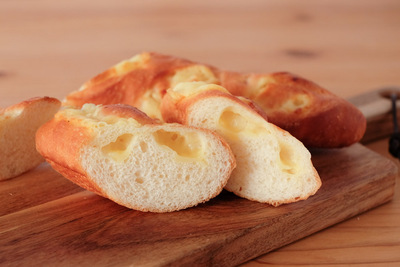 自然解凍後、あらかじめ予熱しておいたオーブンやトースターで温めてお召し上がりください。(※気温が上がってくる夏場は一晩冷蔵庫で解凍してください) パン全体に霧吹きなどで軽く水をかけてからトースターで3分~4分ほど加熱するとさっくり、もっちり出来たてのようになり美味しく召し上がれます。 厚みのあるパンは表面がこげやすいのでアルミホイルをかけて加熱してください。