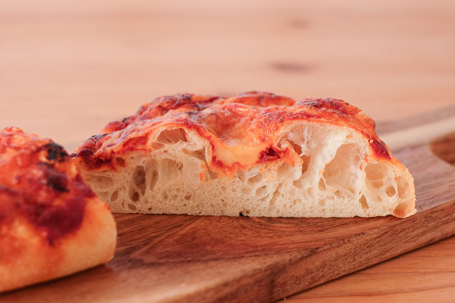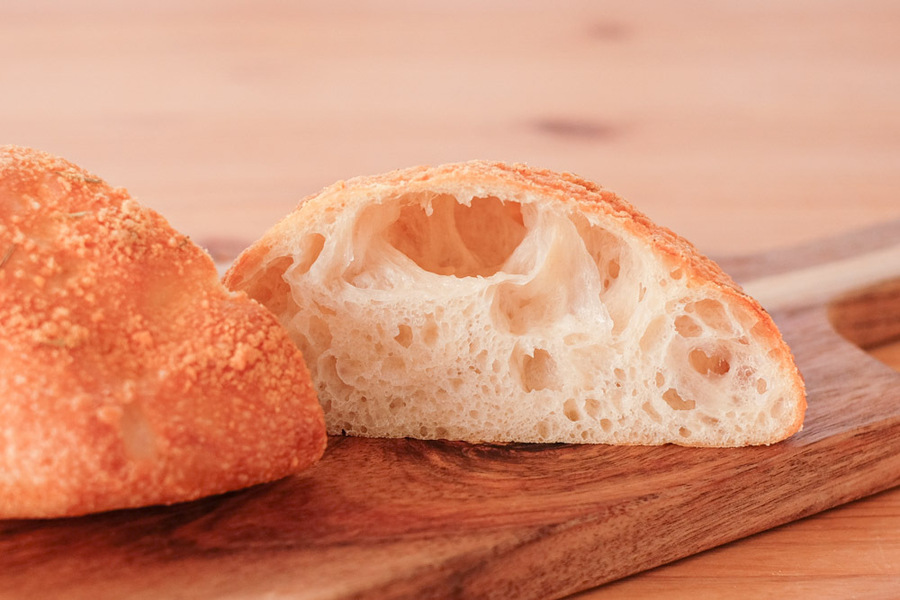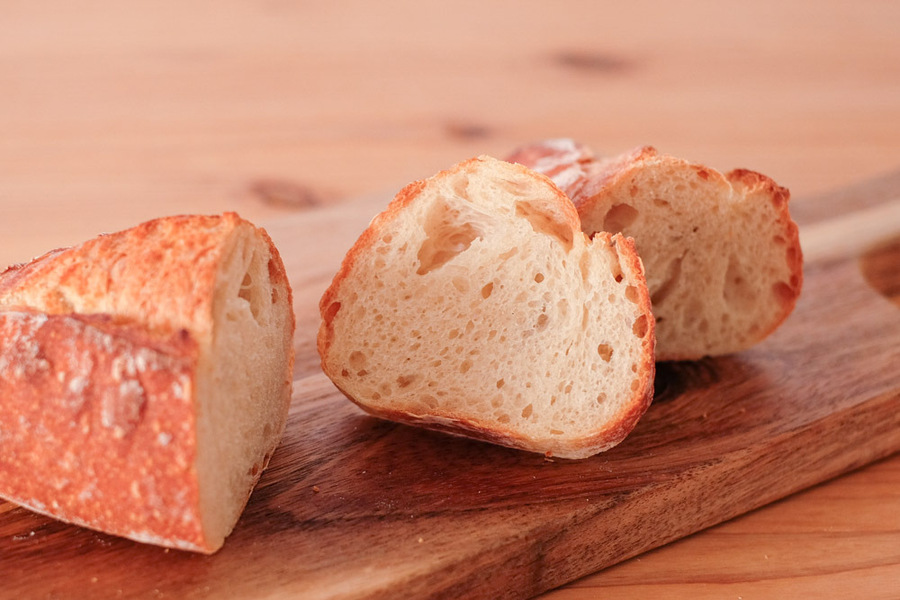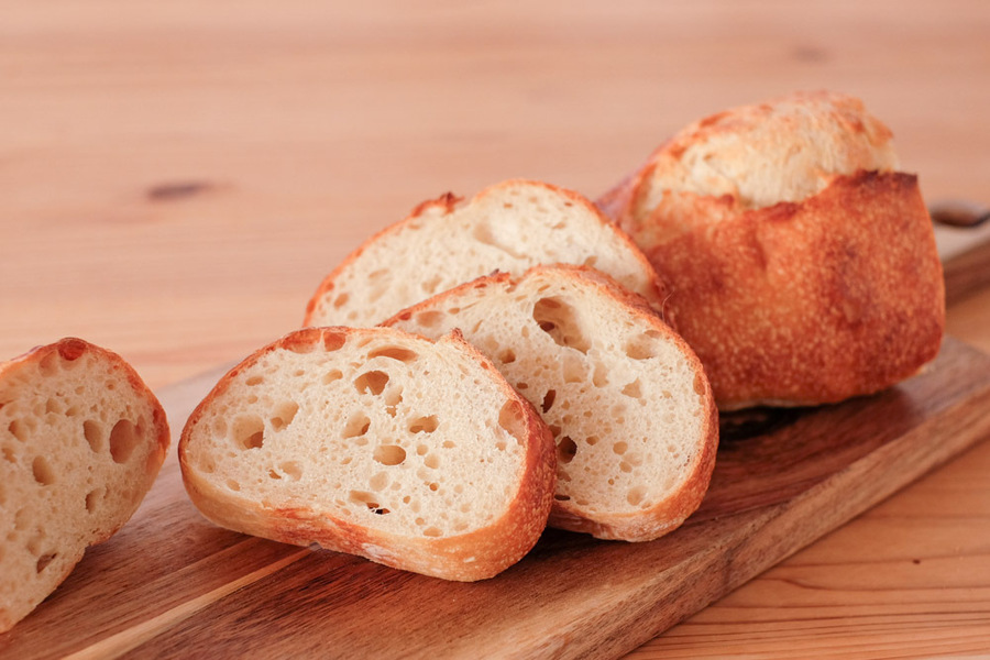自然解凍後、あらかじめ予熱しておいたオーブンやトースターで温めてお召し上がりください。(※気温が上がってくる夏場は一晩冷蔵庫で解凍してください) パン全体に霧吹きなどで軽く水をかけてからトースターで1分ほど加熱するとさっくり、もっちり出来たてのようになり美味しく召し上がれます。