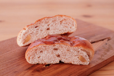 自然解凍後、あらかじめ予熱しておいたオーブンやトースターで温めてお召し上がりください。(※気温が上がってくる夏場は一晩冷蔵庫で解凍してください) パン全体に霧吹きなどで軽く水をかけてからトースターで3分~4分ほど加熱するとさっくり、もっちり出来たてのようになり美味しく召し上がれます。 厚みのあるパンは表面がこげやすいのでアルミホイルをかけて加熱してください。
