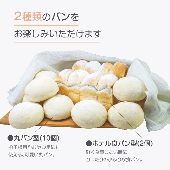 ホテル食パン型2個、丸パン型10個のパンが入ります。