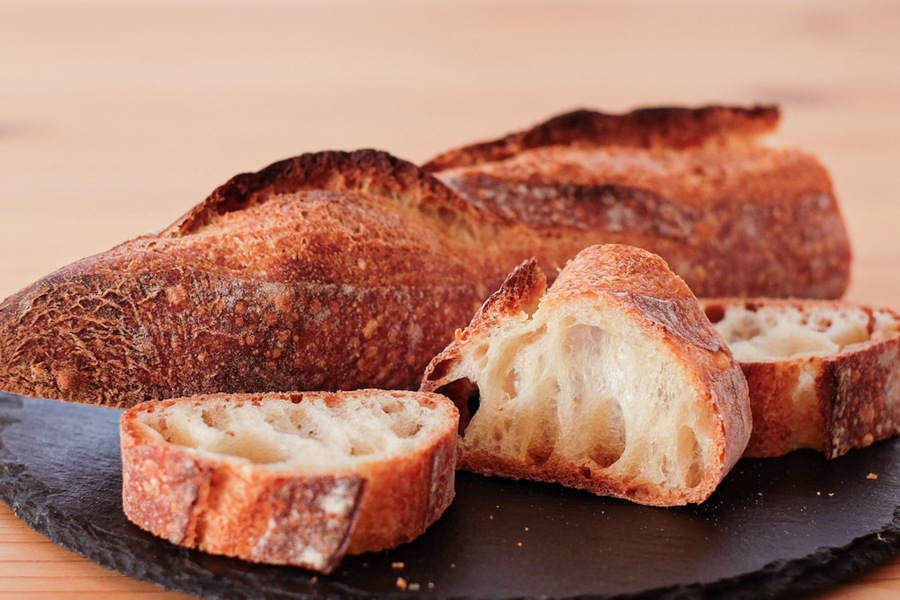 自然解凍後、あらかじめ予熱しておいたオーブンやトースターで温めてお召し上がりください。(※気温が上がってくる夏場は一晩冷蔵庫で解凍してください) パン全体に霧吹きなどで軽く水をかけてからトースターで3分~4分ほど加熱するとさっくり、もっちり出来たてのようになり美味しく召し上がれます。 厚みのあるパンは表面がこげやすいのでアルミホイルをかけて加熱してください。