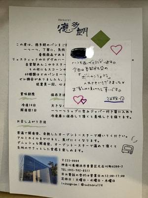 待ちにまった徳太郎さんのパンでした。沢山の種類にワクワクがたまりません、明日から家族と争奪戦になりますが美味しく頂きたいと思います。ありがとうございました💓