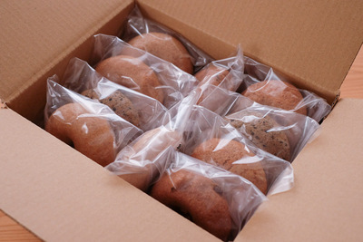 自然解凍後、あらかじめ予熱しておいたオーブンやトースターで温めてお召し上がりください。(※気温が上がってくる夏場は一晩冷蔵庫で解凍してください) パン全体に霧吹きなどで軽く水をかけてからトースターで3分~4分ほど加熱するとさっくり、もっちり出来たてのようになり美味しく召し上がれます。