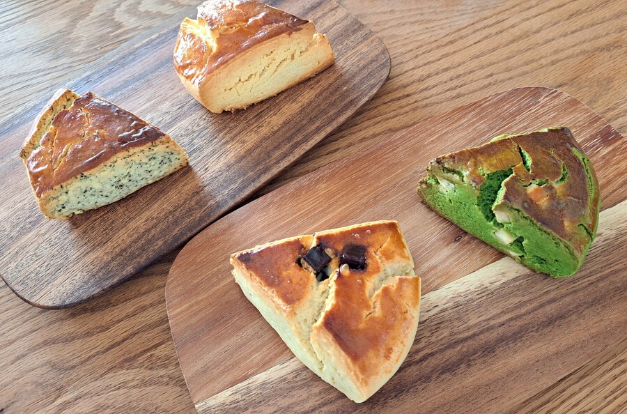 岡山県産米粉のスコーン 8個入り ・発酵バターのリッチスコーン 2個 ・アールグレイのスコーン 2個 ・チャンクチョコスコーン 2個 ・抹茶とホワイトチョコのスコーン 2個