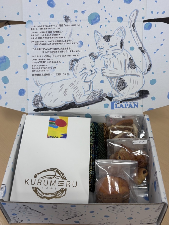 ●くるめる:1袋 ●さをり織りパネル小(約18cm×14cm):1枚 ●カフェオレラスク(1袋50g):1袋 ●ミニチョコクロワッサンラスク(5個入り):1袋 ●カマンベールチーズケーキ:1種 ◆ご注意事項 ・スコーンのフレーバーおよび、さをり織りパネルのデザインはランダムとなります。届いてからのお楽しみとしてご理解ください。デザインの指定はできかねます。 ・数に限りがありますので、なくなり次第終了となります。