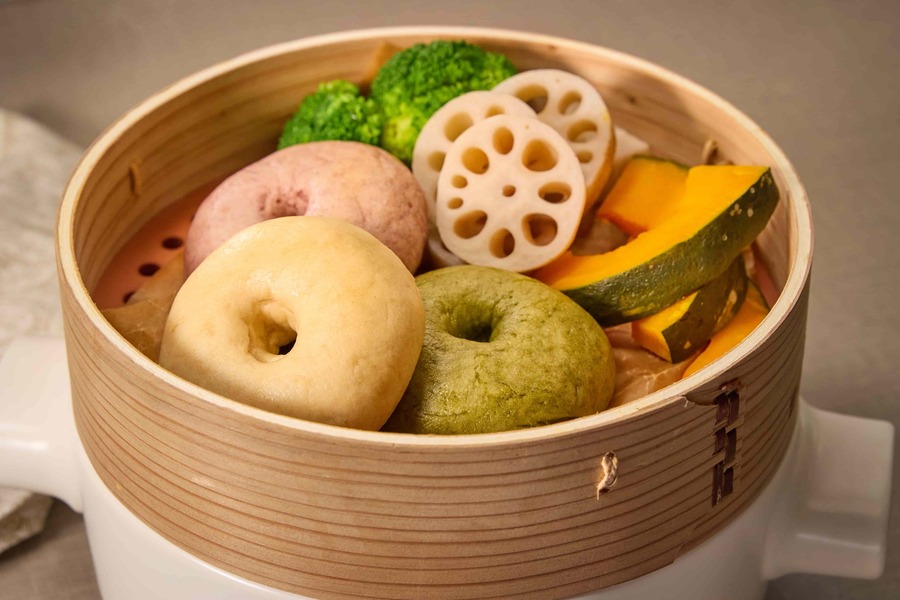 ●冷凍からの温め方 袋に切り込みを入れ、電子レンジ600Wで1分~加熱して、なるべくお早めにお召し上がりください。 お好みでトースターで1分ほど焼くとサックリ仕上がります。 温めすぎると硬くなりますのでご注意ください。 ●蒸し器・セイロでの温め方 冷凍から沸騰した状態で強火7分ほど