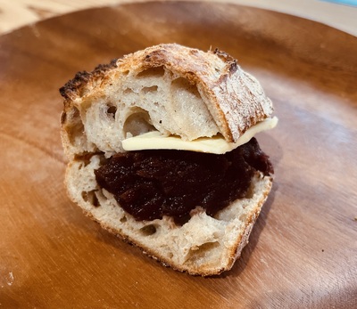 自然解凍後、あらかじめ予熱しておいたオーブンやトースターで温めてお召し上がりください。(※気温が上がってくる夏場は一晩冷蔵庫で解凍してください) パン全体に霧吹きなどで軽く水をかけてからトースターで3分~4分ほど加熱するとさっくり、もっちり出来たてのようになり美味しく召し上がれます。
