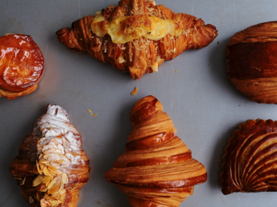クロワッサン:小麦粉(国産)、バター、グラニュー糖、パン酵母、塩、卵、牛乳/乳化剤(一部に小麦、卵、乳成分を含む) クロックムッシュ:小麦粉(国産)、バター、 牛乳、チーズ、豚バラ肉、グラニュー糖、卵、パン酵母、塩、胡椒、パプリカパウダー/乳化剤、リン酸塩(Na)、カゼイン(Na)、増粘剤(増粘多糖類)、調味料(アミノ酸等)、保存料(ソルビン酸K)、酸化防止剤(ビタミンC)、発色剤(亜硝酸Na)、着色料(コチニール) パン・オ・ショコラ:小麦粉(国産)、バター、グラニュー糖、アーモンド、パン酵母、カカオマス、砂糖、ココアパウダー、ココアバター、塩、卵、牛乳/乳化剤 クロワッサンダマンド:小麦粉(国産)、バター、 グラニュー糖、アーモンド、粉糖、パン酵母、塩、卵、牛乳、ラム酒/乳化剤(一部に小麦、卵、乳成分を含む) ショーソンオポンム: りんご(国産)、小麦粉、バター、グラニュー糖、粉糖、卵、アーモンド、レモン 汁、ラム酒、酢、塩/ クエン酸(一部に小麦、卵、乳成分を含む) クイニーアマン:小麦粉、バター、グラニュー糖、卵、パン酵母、ラム酒、塩/乳化剤(一部に小麦、卵、乳成分を含む) ※アレルギーがご心配な方はご遠慮下さい。 ※各パンに原材料表示シールを貼付します。