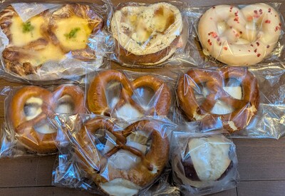 クロックムッシュプレッツェル、ブッタープレッツェルなど7種類8個のパンが届きました。プレッツェルにこんなにもバリエーションがあるなんて驚きです。むっちりとしたプレッツェルはどれも食べ応えがありました。ごちそうさまでした。