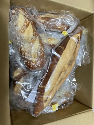 無事に宝箱が届きました。今回で三回目のリピートですが、いつも丁寧に箱詰めされていて、それだけで食べるのが楽しみになってきます。美味しいパンをありがとうございます。解凍後トースターで焼くと中のバターやクリームが溶けてパン生地と奏でるハーモニーが気に入っています。