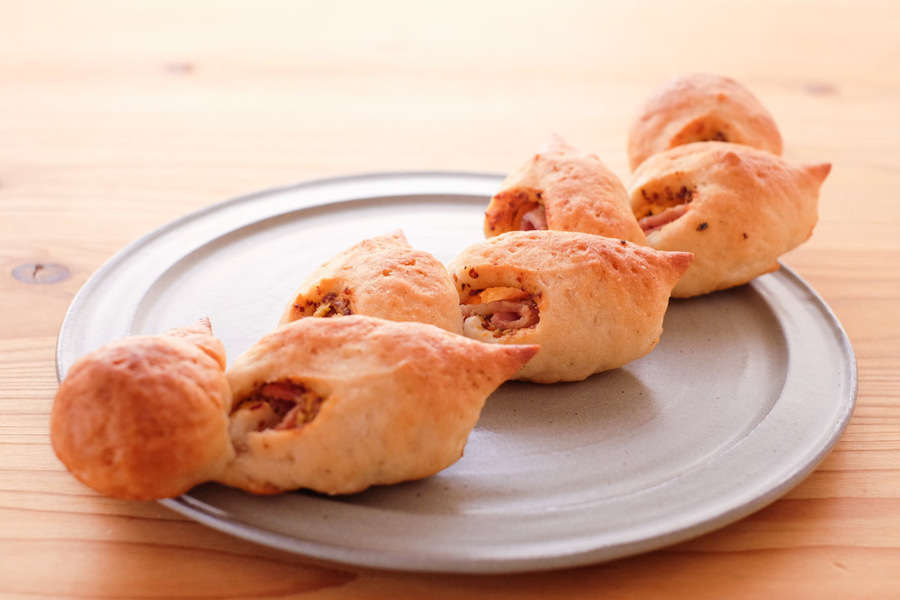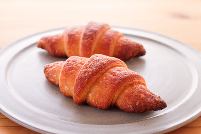 自然解凍後、あらかじめ予熱しておいたオーブンやトースターで温めてお召し上がりください。(※気温が上がってくる夏場は一晩冷蔵庫で解凍してください) パン全体に霧吹きなどで軽く水をかけてからトースターで3分~4分ほど加熱するとさっくり、もっちり出来たてのようになり美味しく召し上がれます。