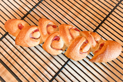 食パン・菓子パン・総菜パン:北海道産小麦(春よ恋)、牛乳、天然水、三温糖、バター、卵、パン酵母、沖縄海水塩、フランクフルトソーセージ、カレーフィリング、ハム フランスパン:フランス産小麦粉、天然水、ゲランドの塩、ユーロモルト、パン酵母、ベーコン アレルゲン(8品目):小麦、卵、乳、くるみ、大豆(季節限定のパン) ※原材料表示シールをご確認ください。 ※アレルギーがご心配な方はご遠慮ください。 ※生地は無添加ですが、フランクフルトソーセージや、ベーコン、ハム、カレーフィリングには添加物が含まれます。