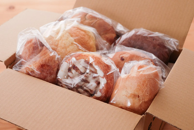 60サイズの箱に10個前後のパンをお詰めしてお送りいたします。 そのうちの半分はベーグルとなります。 それ以上になる場合もございますので、ご了承ください。 デニッシュ系やクロワッサンもランダムで入ります。 同じ商品が2個入る事もございます。