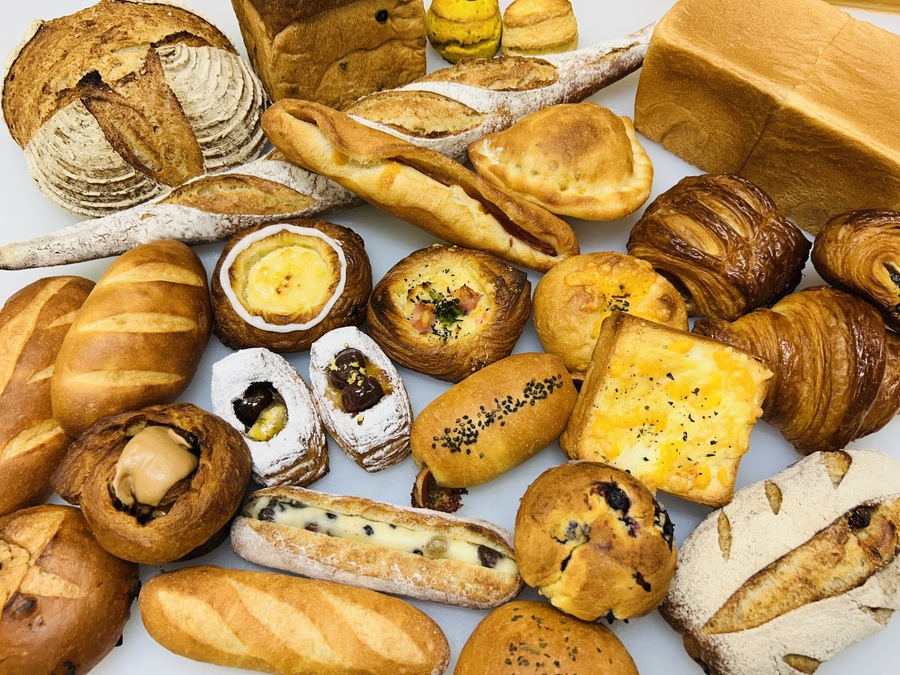 主な原材料:小麦粉、砂糖、塩、パン酵母、バター 他 アレルゲン(28品目):小麦・卵・乳成分・大豆・豚肉・アーモンド・クルミ・ごま 他 国産小麦の食パン(商品一例):小麦粉(北海道産)、砂糖、無塩バター、イースト、脱脂粉乳、岩塩 アスパラベーコン(商品一例):小麦粉(北米産)、アスパラ、ベーコン、モッツァレラチーズ、岩塩、ドライイースト、粒マスタード、マヨネーズ、黒コショウ、モルトシロップ/リン酸塩(Na)、保存料(ソルビン酸K)、調味料、ビタミンC、くん液、着色料、発色剤(亜硝酸Na)、香辛料抽出物 ※アレルギーがご心配な方はご遠慮下さい。