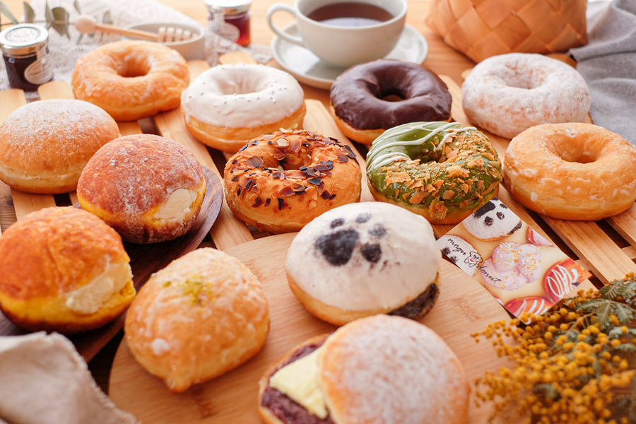 主な原材料:小麦粉、砂糖、塩、パン酵母、バター、卵、脱脂粉乳、植物油脂 アレルゲン(8品目):小麦・卵・乳成分・大豆・アーモンド 他 チョコドーナツ(商品一例):小麦粉(アメリカ・カナダ・国産)、準チョコレート、卵、バター、砂糖、脱脂粉乳、食塩、パン酵母、植物油脂/乳化剤(ソルビタン脂肪酸エステル)、VC、香料 シュガー(商品一例):小麦粉(アメリカ・カナダ・国産)、卵、バター、砂糖、ドーナツシュガー(ぶどう糖、でん粉、植物油脂)、脱脂粉乳、食塩、パン酵母、植物油脂/乳化剤(ソルビタン脂肪酸エステル)、VC、香料 ※アレルギーがご心配な方はご遠慮下さい。