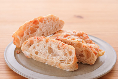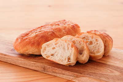 自然解凍後、あらかじめ予熱しておいたオーブンやトースターで温めてお召し上がりください。(※気温が上がってくる夏場は一晩冷蔵庫で解凍してください) パン全体に霧吹きなどで軽く水をかけてからトースターで3分~4分ほど加熱するとさっくり、もっちり出来たてのようになり美味しく召し上がれます。