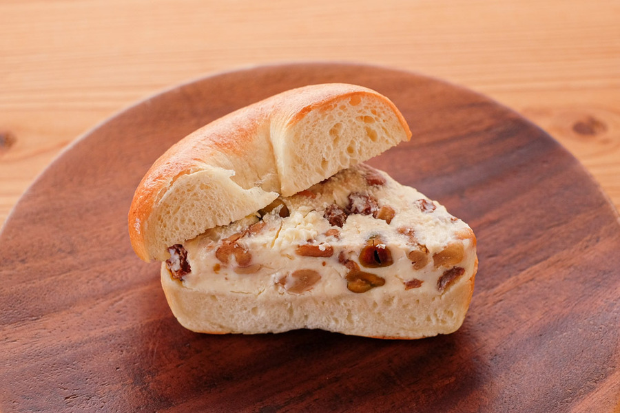 10個ほど入ります。 ※パンの大きさにより前後します ※クリームチーズサンドは、ハーフサイズにカットしたベーグルにクリームチーズのフィリングを挟んでいます。
