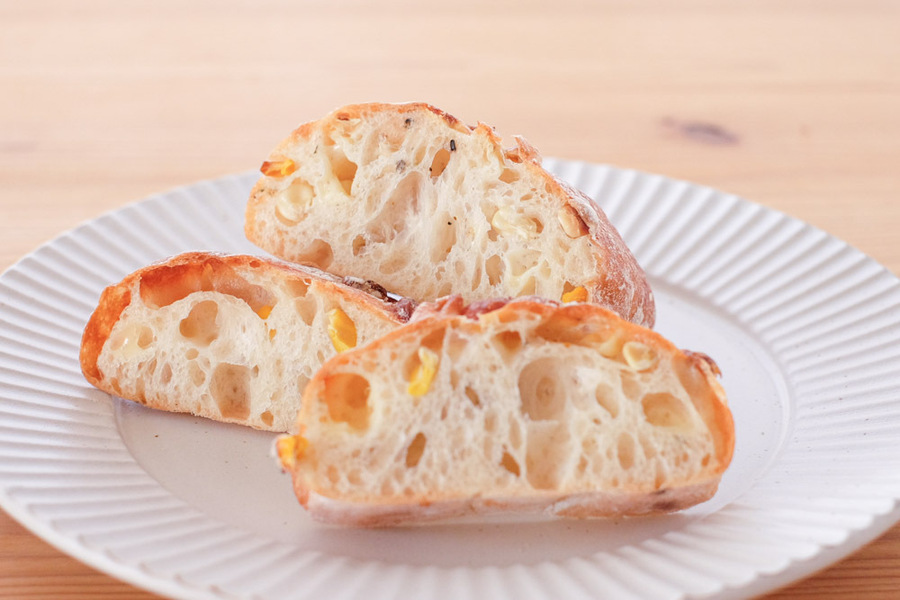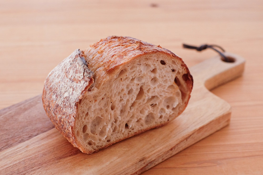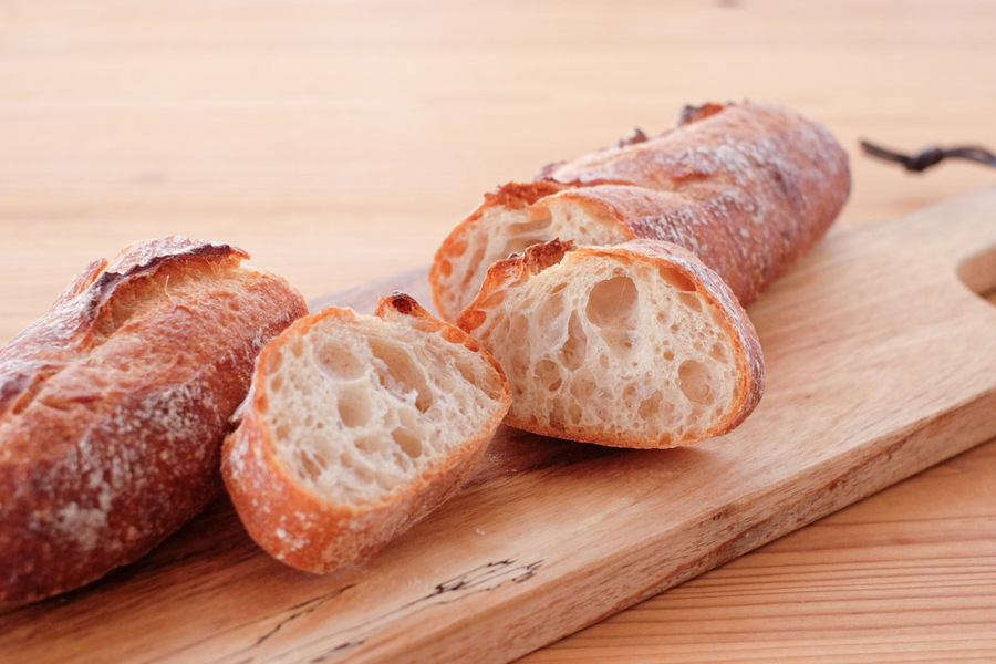 自然解凍後、あらかじめ予熱しておいたオーブンやトースターで温めてお召し上がりください。(※気温が上がってくる夏場は一晩冷蔵庫で解凍してください) パン全体に霧吹きなどで軽く水をかけてからトースターで3分~4分ほど加熱するとさっくり、もっちり出来たてのようになり美味しく召し上がれます。