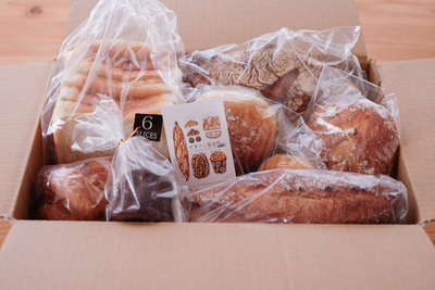 お食事パンを中心に13個前後のパンが入ります。 当店のおすすめの4商品は必ず入ります。 ①食パン 1斤(6枚切りでお届けします) ②バゲット 1本(スライスなし) ③カンパーニュ ハーフサイズ(スライスなし) ④ロデブハーフサイズ(スライスなし)※季節によりナッツやドライフルーツ、チーズなどが入ります。 その他、菓子パンや調理パンといった小物パンが入ります。