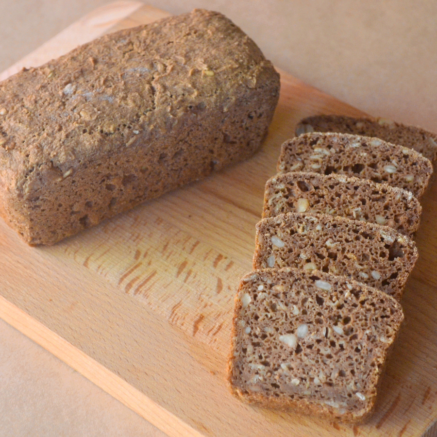 玄米粉、全粒ソルガム粉、オートミール、ひまわりの種、くるみ、有機モラセス、タピオカ粉、有機フラックスシード、有機キャロブ、塩、オールスパイス、サイリウムハスク、ドライイースト ※サイリウムハスクがNGの方はなしで作ることも可能です。メッセージにてお知らせください ※当店では小麦の持ち込みは一切ありませんが、一部卵・乳製品・動物性食材の使用があります。アナフィラシキー症状のある方は医師にご相談の上十分にご注意・ご検討くださいませ。