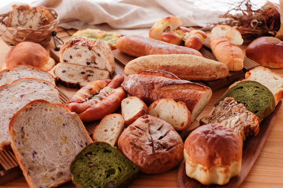 主な原材料:小麦粉、砂糖、塩、パン酵母、バター、植物油脂(マーガリン) 他 アレルゲン(28品目):小麦・卵・乳成分・大豆・アーモンド・豚肉・ごま 他 バゲット(商品一例):小麦粉(北海道産)、赤穂の塩、イースト酵母 ちくわパン(商品一例):小麦粉(北海道産)、ちくわ(魚肉、発酵調味料)、ごぼう、マヨネーズ、山くらげ、にんじん、卵、バター、食塩、酵母、酵素大麦エキス、米酵素調味料、植物油脂、ごま、香辛料/調味料(アミノ酸等)、グリシン、増粘剤(キサンタンガム)、酢酸Na, ※アレルギーがご心配な方はご遠慮下さい。