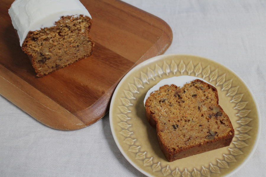 原材料:人参(国産)、小麦粉、菜種油、クリームチーズ、卵、きび砂糖、くるみ、レーズン、レモン果汁、粉糖、シナモン、ナツメグ、ゲランドの塩/乳化剤、膨張剤、(一部に小麦・卵・乳成分・くるみを含む)