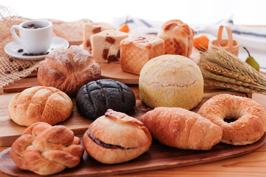 主な原材料:小麦粉(強力粉・薄力粉)、全粒粉、もち麦粉、砂糖、塩、パン酵母、バター、オリーブオイル、食用調合油(なたね油、サフラワー油) アレルゲン(8品目):小麦・乳成分・卵 山ちゃんパン(ブロッコリー):強力粉(北海道産)、薄力粉(北海道産)、全粒粉(北海道産)、もち麦粉(愛媛県産)、オーガニックシュガー、塩、食用調合油(なたね油、サフラワー油)、ドライイースト、ブロッコリーパウダー タバチュール(粒あんクリームチーズ入り)(商品一例):強力粉(北海道産)、薄力粉(北海道産)、全粒粉(北海道産)、もち麦粉(愛媛県産)、粒あん、クリームチーズ、オーガニックシュガー、塩、オリーブオイル、ドライイースト/安定剤(増粘多糖類)