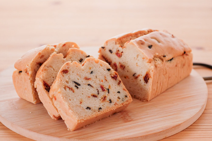 ブラックオリーブとドライトマトの米粉ケーキ