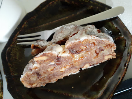 小麦粉(国内製造)、砂糖、バター、卵、アーモンドパウダー、レーズン、クルミ、スライスアーモンド、洋酒、たんかんピール、牛乳、シナモン、ナツメグ、クローブ、カルダモン、オールスパイス、バニラビーンズ、酵母、塩、メープルシロップ(含まれるアレルギー物質:小麦・卵・乳成分・アーモンド・オレンジ・くるみ)