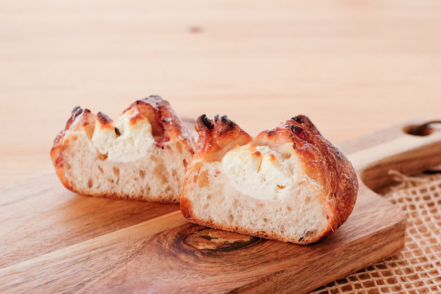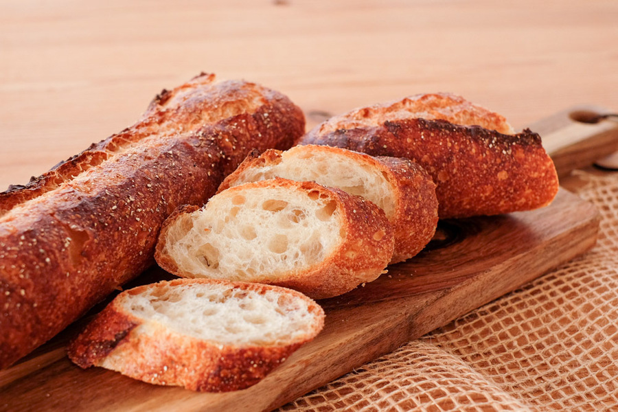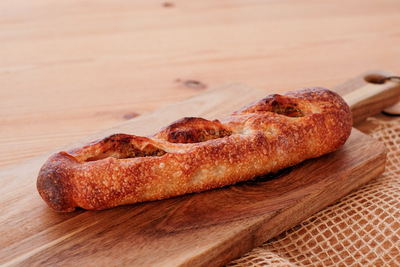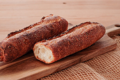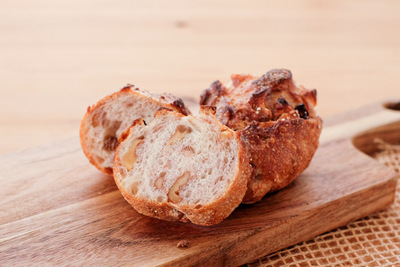 自然解凍後、あらかじめ予熱しておいたオーブンやトースターで温めてお召し上がりください。(※気温が上がってくる夏場は一晩冷蔵庫で解凍してください) パン全体に霧吹きなどで軽く水をかけてからトースターで3分~4分ほど加熱するとさっくり、もっちり出来たてのようになり美味しく召し上がれます。 厚みのあるパンは表面がこげやすいのでアルミホイルをかけて加熱してください。
