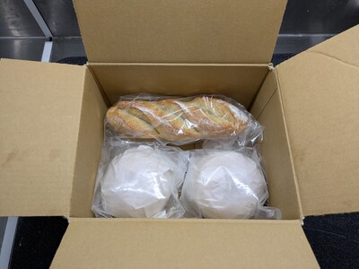 【かもめバーガー】 紙袋のまま600Wの電子レンジで2分(冷凍ままなら3分)が目安です。加熱後はバンズとパティの温度が馴染むまで少しお待ちください。塩味だけで十分おいしい肉とパンで作っておりますので、そのまま大胆にかぶりついてお召し上がりください。一般的なバーガーのように生野菜やソースを挟んでも結構です。 【1/3バゲット】 180℃で予熱したオーブンで5分(冷凍ままなら10分)が目安です。手で折ってクラスト(表面)がバキッと良い音がしたら食べ頃です。小さく手でちぎって20回ほど噛むと本来のパンの味が楽しめます。お好みでバター、チーズ、ハムなどとあわせてお楽しみください。15mmほどにスライスしてアヒージョやブルスケッタに、サイドカットして具を挟んでカスクートにするのもお勧めです。