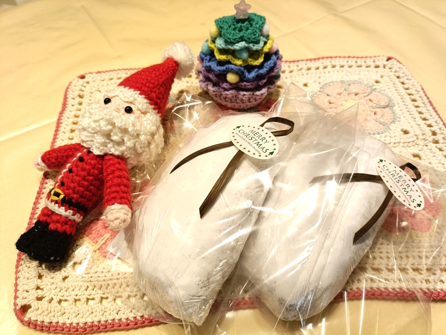 原材料:小麦粉、バター、砂糖、マーガリン、レーズン、オレンジピール、パイン砂糖漬け、チェリー、レモンピール、洋酒、卵、牛乳、クルミ、スライスアーモンド、パン酵母、塩、シナモン、ナツメグ、/香料、着色料、(一部に小麦、卵、乳製品、くるみ、アーモンド、オレンジを含む) ※アレルギーがご心配な方はご遠慮下さい。 ※原材料表示シール、または同梱する原材料一覧表をご覧ください。